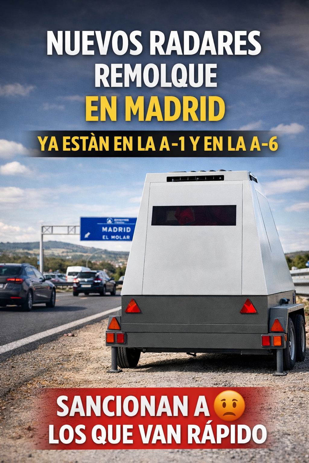 Los nuevos radares móviles tipo remolque ya están operando en carreteras de Madrid. La Dirección General de Tráfico ha comenzado a desplegar este sistema de vigilancia en dos grandes accesos a la capital: la A-1 y la A-6, donde ya han sido detectados en tramos con velocidad reducida.