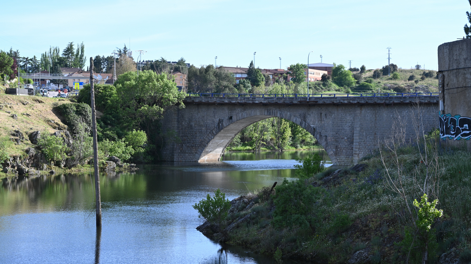 Puente del Arrabal, puente medieval de un solo arco de medio punto que conecta el casco amurallado con el antiguo arrabal y formaba parte de la Cañada Real Segoviana.